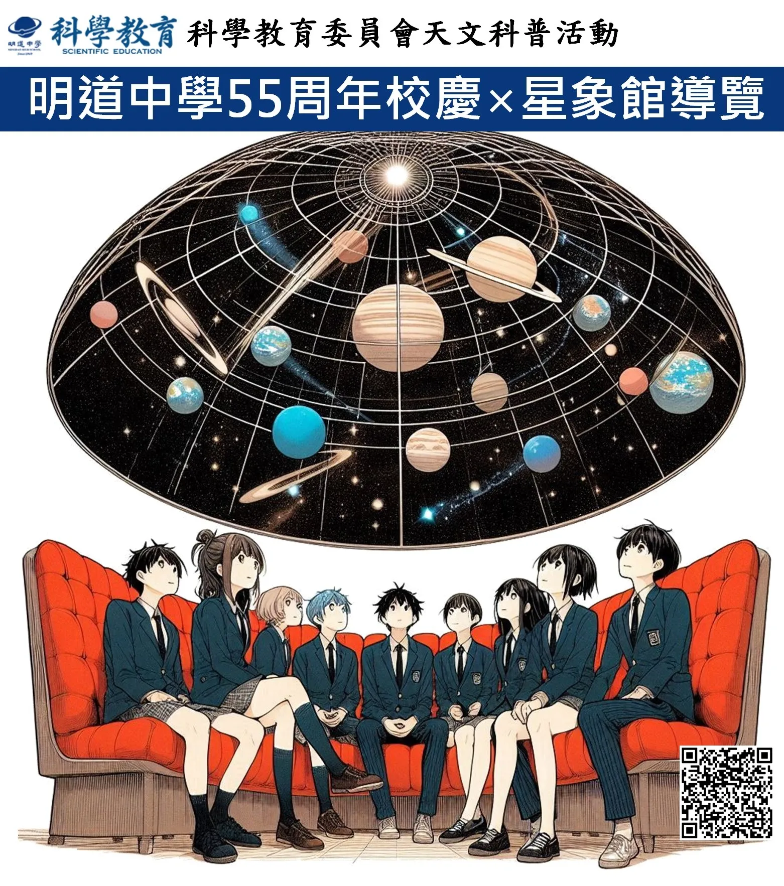 本次,適逢學校55周年校慶活動,科學教育委員會與地球科學科教師群共同辦理此次「星象館導覽」活動,歡迎喜愛天文的師生都能前來星象館,一同沉浸在天文宇宙之美當中。