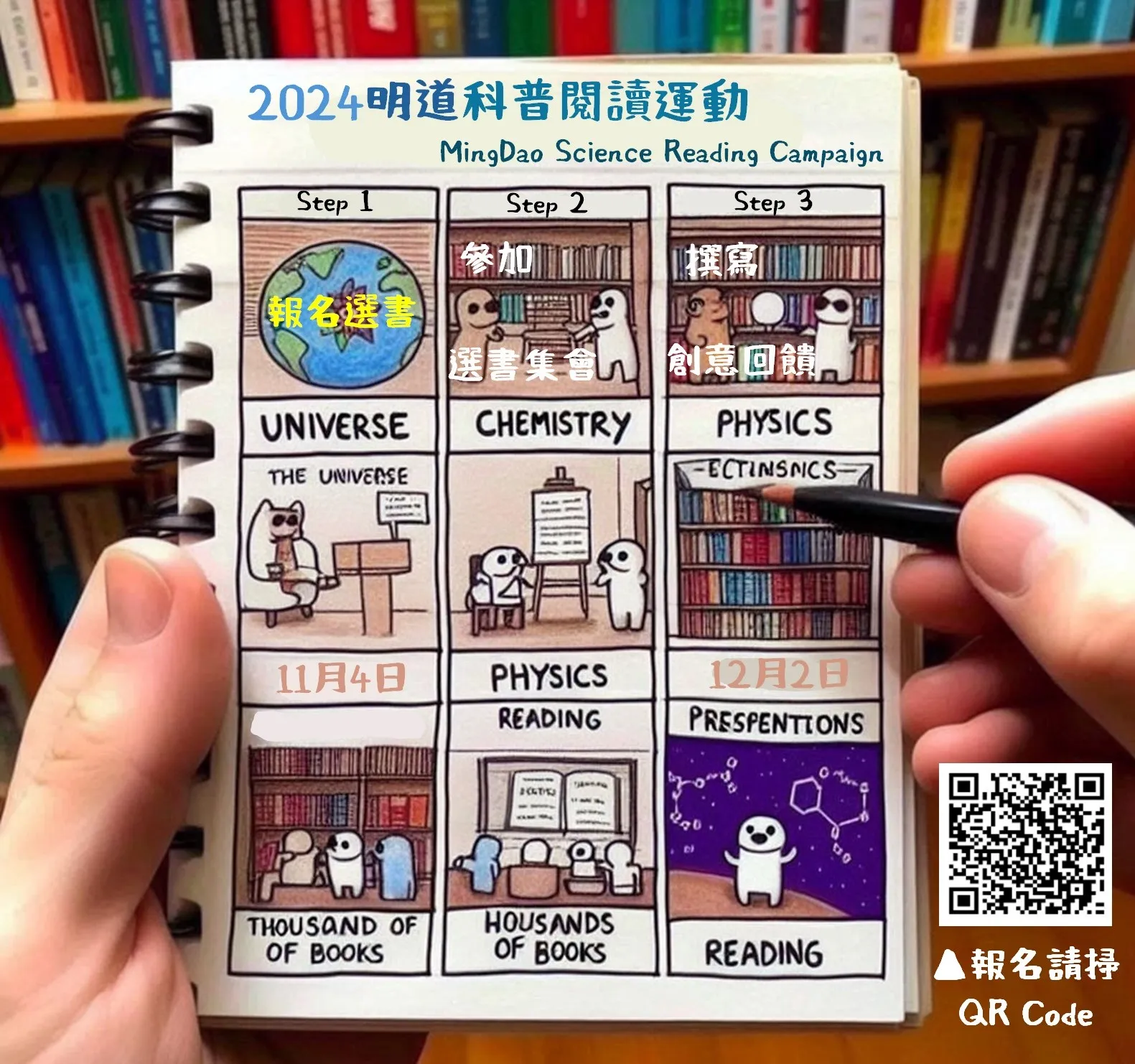 2023年八月時,遠見‧天下文化啟動了「科普啟航—高中職科普閱讀行動」舉辦全國性推廣科普閱讀計劃,提供多本優良科普讀物,都是很珍貴且值得閱讀的好書。學校也躬逢其盛參與了此項科普閱讀計畫,而設立了「明道科普閱讀運動」!有興趣且願意餐與此閱讀計畫的同學,變可優先閱讀到這些經過各方學者與師長挑選出來的佳作,早一步品嘗書中所彌漫的濃郁卷香。