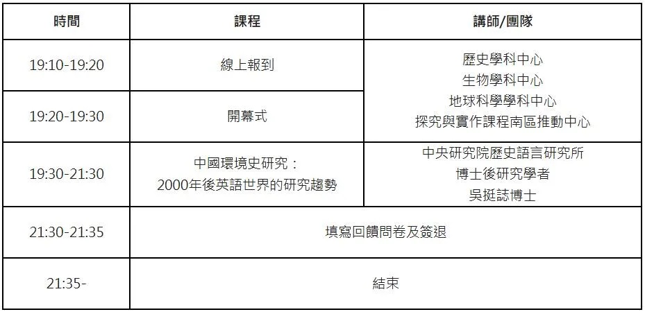最後,演講將總結這些研究在方法和視角上的特色。歡迎有興趣的教師報名參加。 🌏時間:113年11月20日(三)晚上19:30-21:30 🌏型式:線上演講。 🌏主題:中國環境史研究─2000年後英語世界的研究趨勢 🌏講師:吳挺誌博士(中央研究院歷史語言研究所博士後研究學者) 🌏報名:即日起11月14日請至線上表單報名,額滿為止。