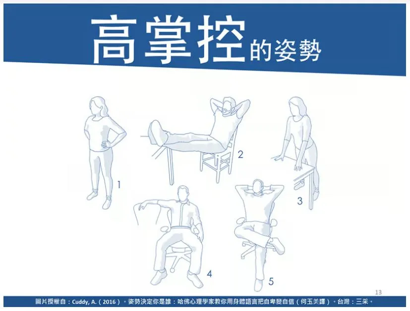 書中 Amy Cuddy 真的是提供很多方法(族繁不及備載),面試前、上場前、隨時都可以提醒自己的姿勢!