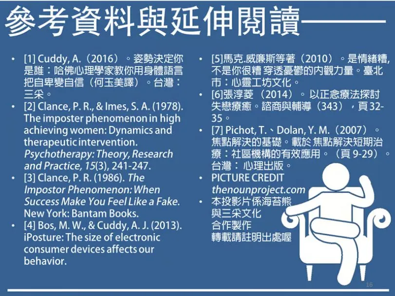 當然,如果是一直以來讀「心靈成長」書籍的人可能會覺得有點失望,因為 Amy Cuddy 並沒有提供一個戲劇性感人的解釋說明「何以你會過得這麼沒有自信」,但這個也是我覺得她扭轉思考的地方。