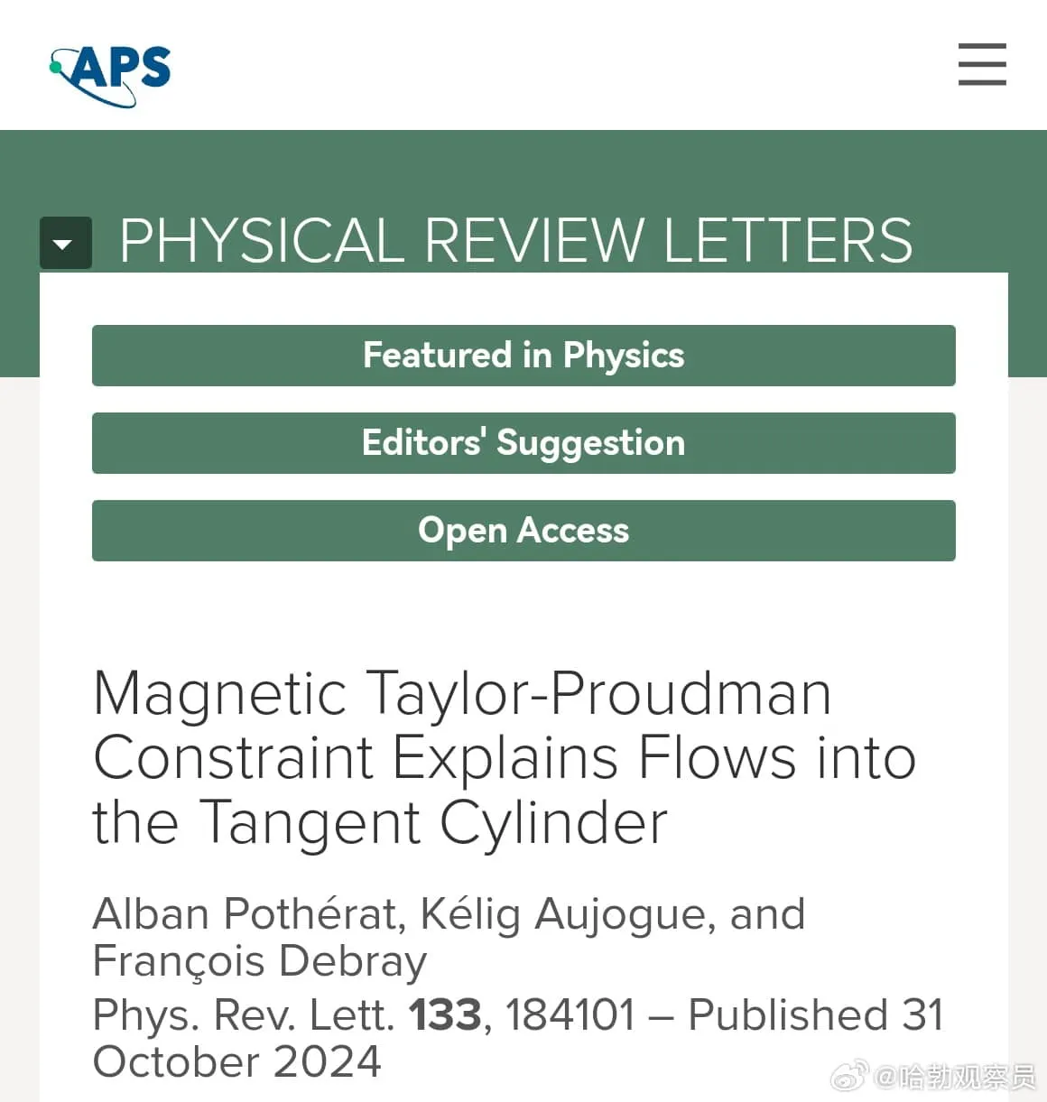 這項研究充分解釋了磁場的流動會穿過切線圓柱體邊界,表明了磁場在塑造地球和行星核心流體動力學上發揮了關鍵作用。