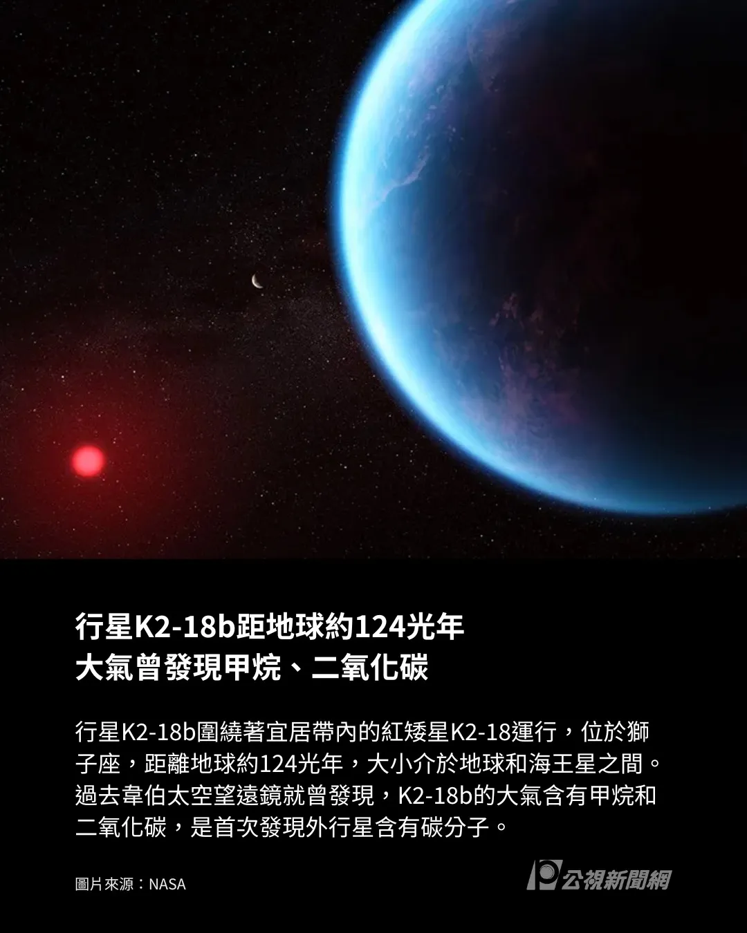 距離地球約124光年的行星K2-18b,位於獅子座,過去韋伯太空望遠鏡就曾發現,K2-18b的大氣含有甲烷和二氧化碳。