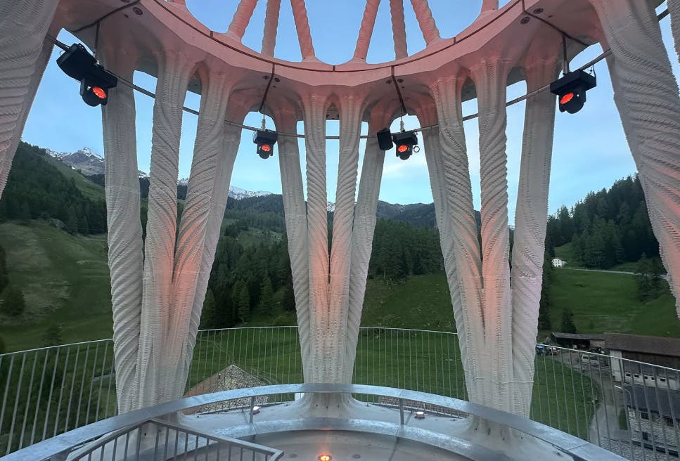 2025年5月20日,瑞士阿爾卑斯山腳下的小村莊穆萊恩斯,一座造型特別的白色高塔正式對外公開。這座叫做「Tor Alva(白塔)」的建築高達30公尺,是目前全世界最高的3D列印塔。塔身像極了一層層的奶油蛋糕,吸引不少人前來一探究竟。開幕當天,直升機將塔上的蓋子掀起,300位來賓見證這一幕。大家可以親自走進塔裡,沿著螺旋樓梯一路爬到最上層,欣賞壯麗的阿爾卑斯山景。