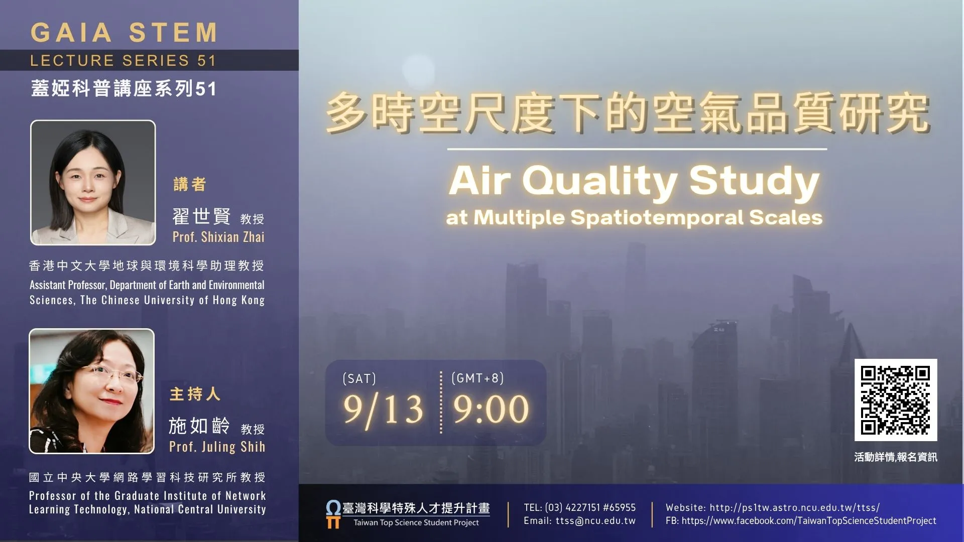 📢 主題:多時空尺度下的空氣品質研究 👨🏫 講者:翟世賢教授(香港中文大學 地球與環境科學助理教授) 🎤 主持人:施如齡教授(國立中央大學 網路學習科技研究所)