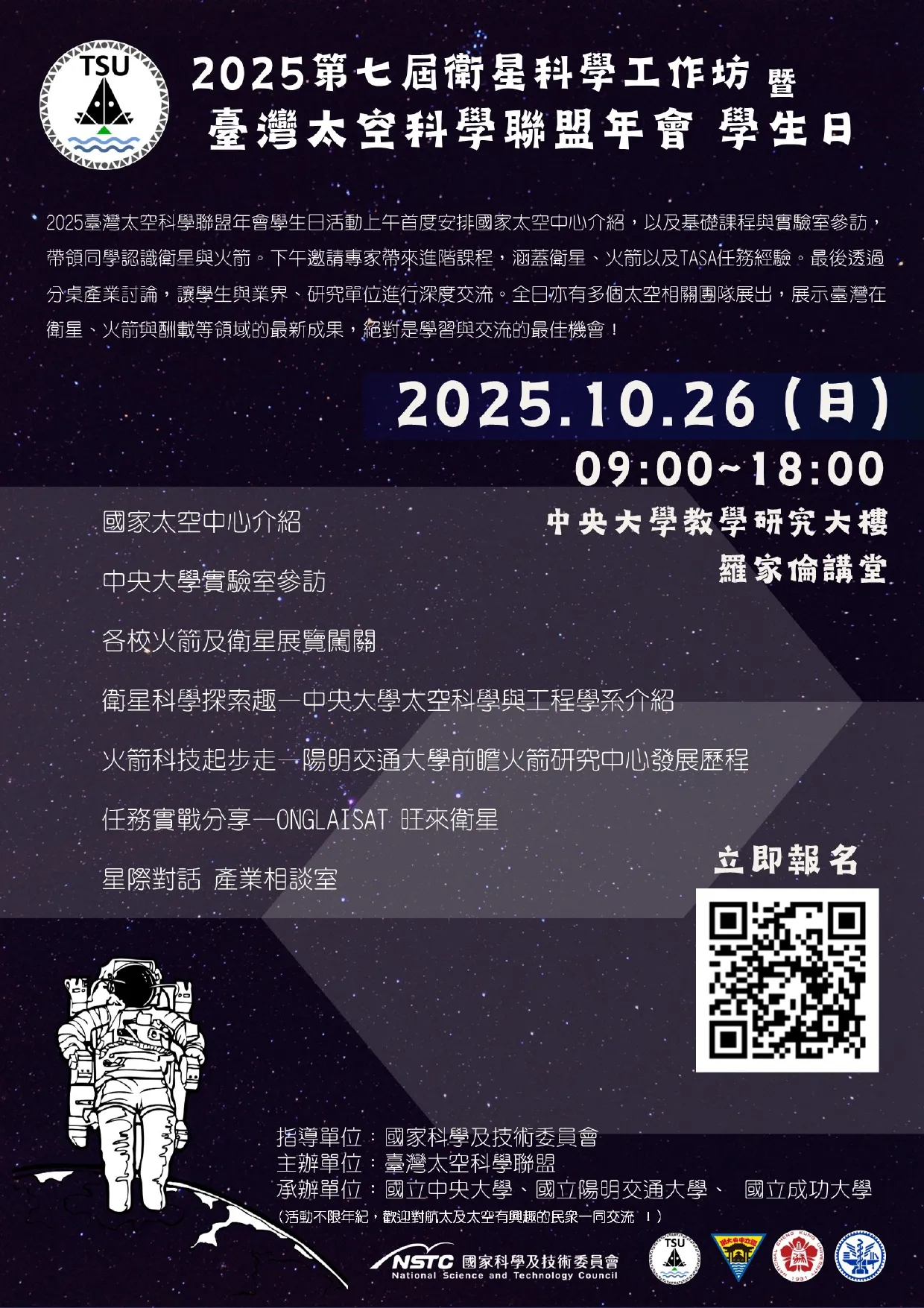 ✨誠摯邀請對太空、衛星與未來科技充滿熱情的師生共同參與,讓我們在中央大學,一起探索宇宙的無限可能!🚀