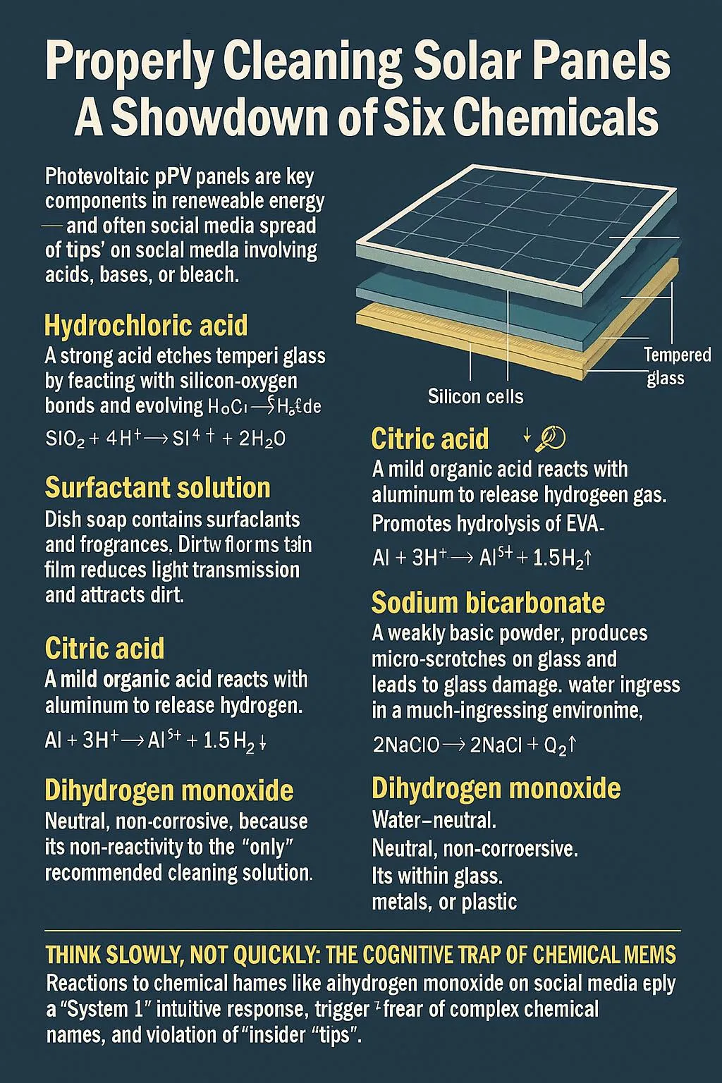 這個看似堅固的結構,其實就像一位身穿玻璃盔甲的戰士——不怕風吹雨打,但極怕化學藥劑。以下,讓本文來逐一拆解家庭常用化學試劑遇上光電板之際,將會蹦出什麼反應吧!