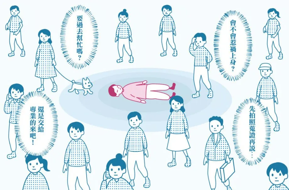這樣的場景常在公共場合發生,多數人會忖量他人行為來評估是否出手助人,這正是社會心理學所關注的「旁觀者效應」(Bystander Effect)。面對單一的待援者時,作為一個旁觀者的「我」,往往會等待他人搶先一步伸出援手。或許是出於自利心態,也可能是「責任分擔」心理作祟,這樣的旁觀者效應在不同狀態下對助人行為的影響與衝突,引發社會心理學家想進一步探究人類社會行為的動機。