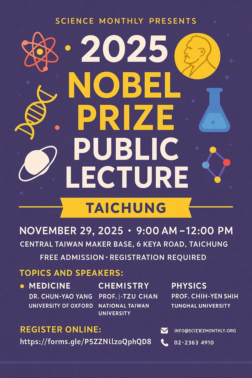 歡迎報名《科學月刊》2025 諾貝爾科普講座-台中場