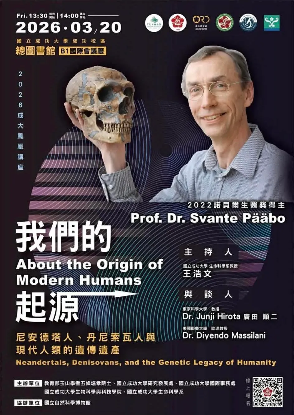 本次講座將由Svante Pääbo教授親自分享這些研究如何改變人類學、基因學與演化生物學的發展,並帶領聽眾從基因的角度探索人類的深遠歷史。